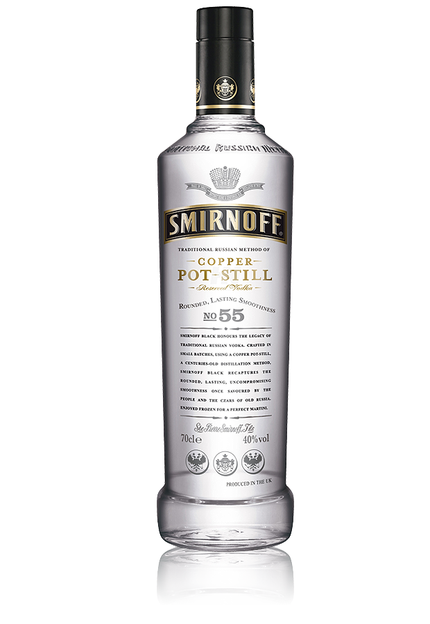 Αντίθετα από άλλες βότκες η SMIRNOFF BLACK αποστάζεται σε παραδοσιακά χάλκινα δοχεία άνω των 100 χρόνων, με τον αυθεντικό Ρώσικο τρόπο. Στη συνέχεια περνάει το απόσταγμα από ειδικά φίλτρα που του δίνουν απαλότερη γεύση. Πίνεται παγωμένη και σκέτη. Το εμπορικό σήμα της Smirnoff άρχισε με μια οινοπνευματοποιία βότκας που ιδρύθηκε στη Μόσχα από τον Pyotr Arsenievich Smirnov (1831-1898), που ήταν γιος αναλφάβητων ρωσικών αγροτών. Διανέμεται τώρα σε 130 χώρες.