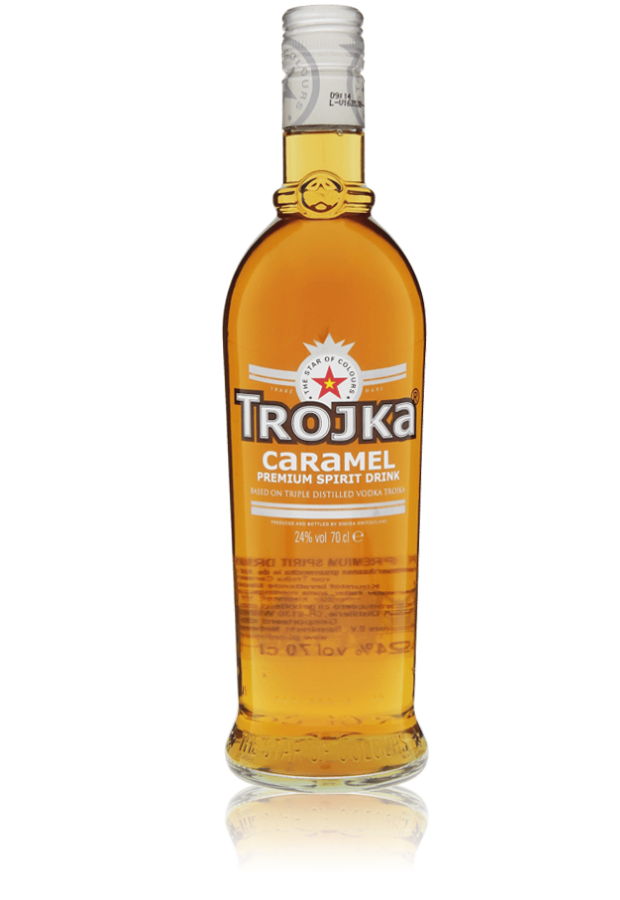 Η ελβετική βότκα Trojka εμπλουτισμένη με το άρωμα και γεύση της πληθωρικής, γλυκιάς καραμέλας... Το αποτέλεσμα είναι ένα απολαυστικό ποτό που πίνεται παγωμένο σαν σφηνάκι ή σε cocktails.