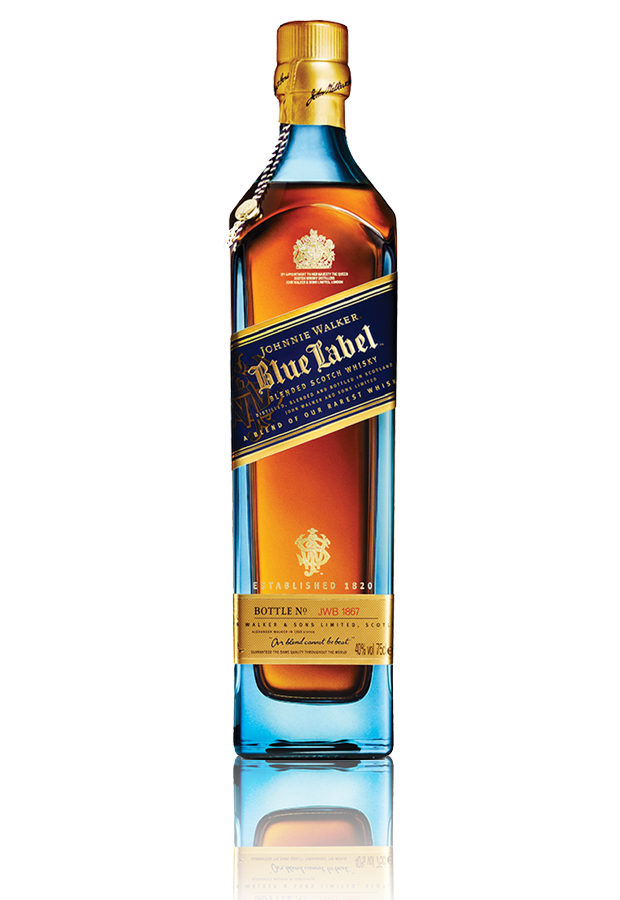Στην κορυφή των Σκοτσέζικων ουίσκι του Οίκου Walker βρίσκεται το Johnnie Walker Blue Label. 'Ένα ουίσκι που αποτελεί την υψηλότερη έκφραση της τέχνης του blending. Στο Johnnie Walker Blue Label βρίσκονται τα 16 σπανιότερα και ακριβότερα malt ουίσκι στον κόσμο, που ξεχώρισαν ανάμεσα σε περισσότερα από επτά εκατομμύρια βαρέλια. Έχει κερδίσει τα περισσότερα βραβεία από οποιοδήποτε άλλο Super Premium ουίσκι στον κόσμο. Ορισμένα από αυτά είναι παλαιωμένα μέχρι και 60 χρόνια. Λόγω της εξαιρετικής σπανιότητας των ουίσκι που το αποτελούν, η παραγωγή του είναι ιδιαίτερα περιορισμένη και κάθε φιάλη είναι αριθμημένη, σαν μοναδική εγγύηση για την αυθεντικότητά του. Το άρωμα καπνού ισορροπεί τέλεια με την γλυκύτητα της σταφίδας. Μια γουλιά προδίδει την ασύγκριτη απαλότητά του και οδηγεί σε εκρηκτικές γεύσεις. Αρχικά απελευθερώνονται οι ξεχωριστές γεύσεις του σέρυ, του μελιού, των φουντουκιών και των ροδοπέταλων. Στη συνέχεια αποκαλύπτονται άλλα κρυμμένα μυστικά, όπως ο αρωματικός καπνός, το ξύλο και η bitter σοκολάτα που επιβραβεύει τον ουρανίσκο. Το Johnnie Walker Blue Label σερβίρεται σε brandy balloon ποτήρι. Λίγο κρύο νερό πριν από κάθε γουλιά θα καθαρίσει τον ουρανίσκο και θα επιτρέψει να απελευθερωθούν ο έντονος χαρακτήρας και η πλούσια, δυνατή γεύση του. Κωδ: 400.28001