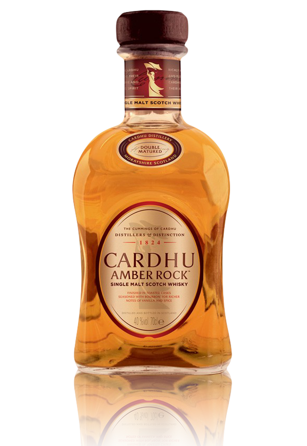 Ουίσκι που ωριμάζει σε βαρέλια που φιλοξενούσαν γλυκό, απαλό bourbon με γλυκές νότες βανίλιας και μπαχαρικών. Η νέα έκφραση του περίφημου Cardhu Distillery στο Speyside παίρνει το όνομα της από το χρώμα του υγρού και τη μετάφραση του Cardhu που στα Gaelic σημαίνει "μαύρος βράχος".