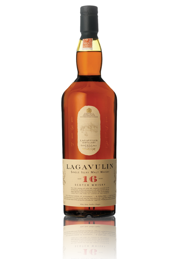 Το σύμβολο των παραδόσεων ενός σκληροτράχηλου νησιού, του οποίου οι ρίζες είναι φτιαγμένες από τύρφη, το άρτια καπνισμένο Lagavulin είναι απλώς μοναδικό, μια κατηγορία από μόνο του. Είναι από τα πρώτα single malt παγκοσμίως που εμφιαλώθηκαν. Μεγάλη διάρκεια ζύμωσης, μακρά απόσταξη και ωρίμανση σε δρύινα βαρέλια bourbon μαζί εξασφαλίζουν ότι έτσι το Lagavulin έχει αναπτύξει τον πλούσιο τυρφώδη χαρακτήρα του. Με χρώμα βαθύ κεχριμπαρένιο, αναδύει αρώματα τύρφης, καπνού, ιωδίου και φυκιών. Η γεύση του έχει δυναμικές νότες τύρφης, αποξηραμένων φρούτων και στο πίσω μέρος μια έκρηξη πιπεράτου καπνού, που οδηγεί σε μια μακρά επίγευση. Αναγνωρίσιμο όσο κανένα άλλο με την πρώτη γουλιά, έχει φανατικούς φίλους σε όλο τον κόσμο.