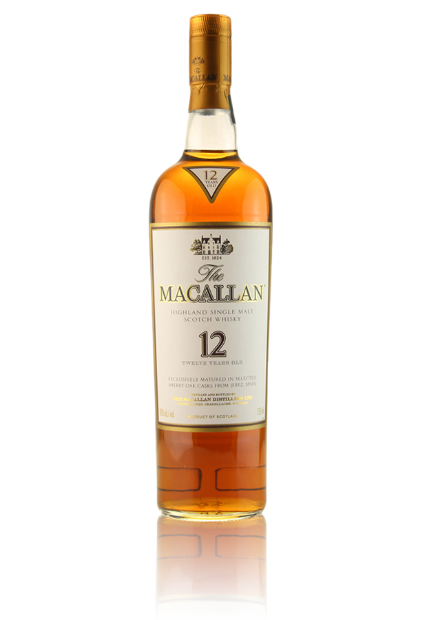 Εξαιρετική ισορροπία από το ωριμασμένο σε βαρέλια sherry 12άρι της Macallan, ένα από τα κορυφαία single malt της ηλικίας του. Γλυκό άρωμα από σουλτανίνες και φρέσκο μήλο φτάνει στη μύτη, με νότες από sherry, τροπικά φρούτα και χρυσαφένιο σιρόπι. Στον ουρανίσκο έρχονται έντονες γεύσεις, μεσαίου σώματος με νότες από ζεστά γλυκίσματα, μαρμελάδα, σουλτανίνες και φλούδες, καθώς αναπτύσσεται παράλληλα η γλύκα από σάκχαρα κριθαριού. Μακρύ τελείωμα με έντονες δρύινες νότες.Μια από τις δημοφιλέστερες οινοπνευματοποιίες στον κόσμο, τις τελευταίες 4 δεκαετίες, κατά τη διάρκεια των οποίων το Macallan έχει χτίσει την καλύτερη φήμη ως ποιοτικό malt ουίσκι και το πιο περιζήτητο ουίσκι για τους συλλέκτες. Οι σπάνιες φιάλες μπορούν να αλλάξουν χέρια για χιλιάδες ευρώ και οι αξία τέτοιων μπουκαλιών ανεβαίνει συνεχώς. Το Macallan έχτισε τη ζηλευτή φήμη του στο γεγονός ότι το κυρίως σώμα του ωριμάζει σε 100% δρύινα βαρέλια για τσέρι. Αυτό οδηγεί σε ένα πλούσιο ουίσκι με βάθος γεύσης.