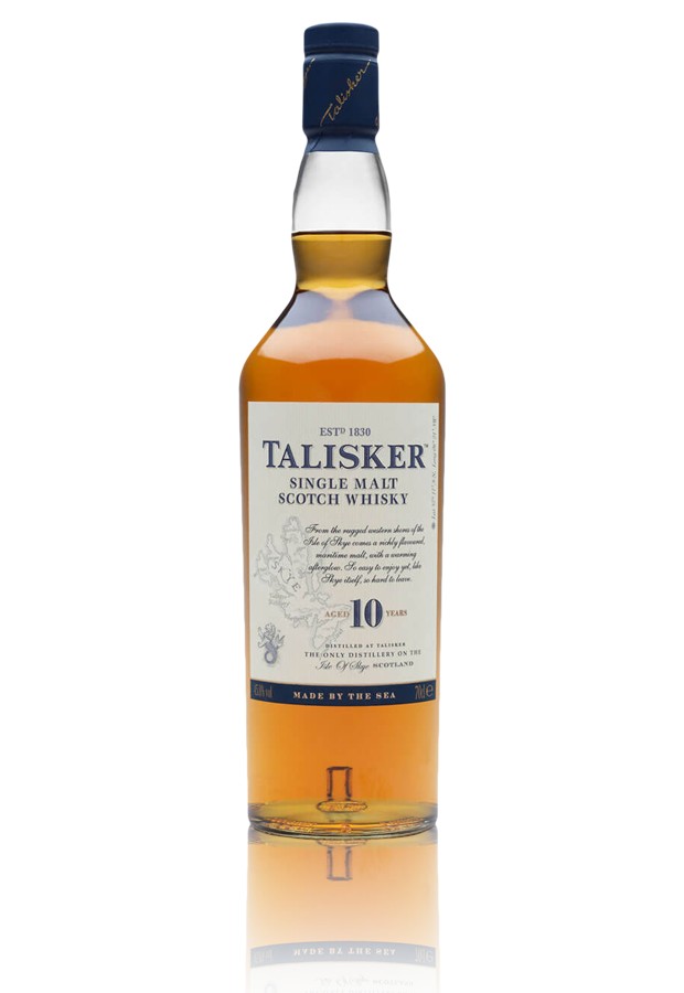 Μοναδικά ώριμο, απόλυτα και αδιαπραγμάτευτα θαλασσινό, χρυσαφένιο και πιπεράτο, το Talisker είναι το single malt που ο Robert Lewis Stevenson είχε αναφέρει ως ο «βασιλιάς των ποτών». Κάποιοι υποστηρίζουν πως το μυστικό της σύνθετης, συναρπαστικής γεύσης του είναι η προσήλωση στην παράδοση, το ημικυκλικό σχήμα των σωλήνων- που συλλαμβάνουν ακόμα και το παραμικρό ίχνος από το άρωμα και τη γεύση που το χαρακτηρίζουν- ή οι χάλκινοι άμβυκες, όμοιους με τους οποίους δεν πρόκειται να συναντήσει κανείς αλλού. Άλλοι θα υποδείξουν το μαλακό νερό των 14 υπόγειων πηγών που αναβλύζουν από τα έγκατα του Hawk Hill ως την επιφάνεια περνώντας μέσα από πλούσια στρώματα τύρφης. Με αστραφτερό χρυσό χρώμα, αφήνει αρώματα θάλασσας, καπνού και θαλασσινών. Η γεύση του, που είναι σύνθετη και θυμίζει θάλασσα, καπνό, πιπέρι, και αποξηραμένα φρούτα, χαϊδεύουν τον ουρανίσκο σε κάθε γουλιά, αφήνοντας μία μακρά και ζεστή επίγευση. Είναι το αγαπημένο malt των εκλεπτυσμένων ουρανίσκων